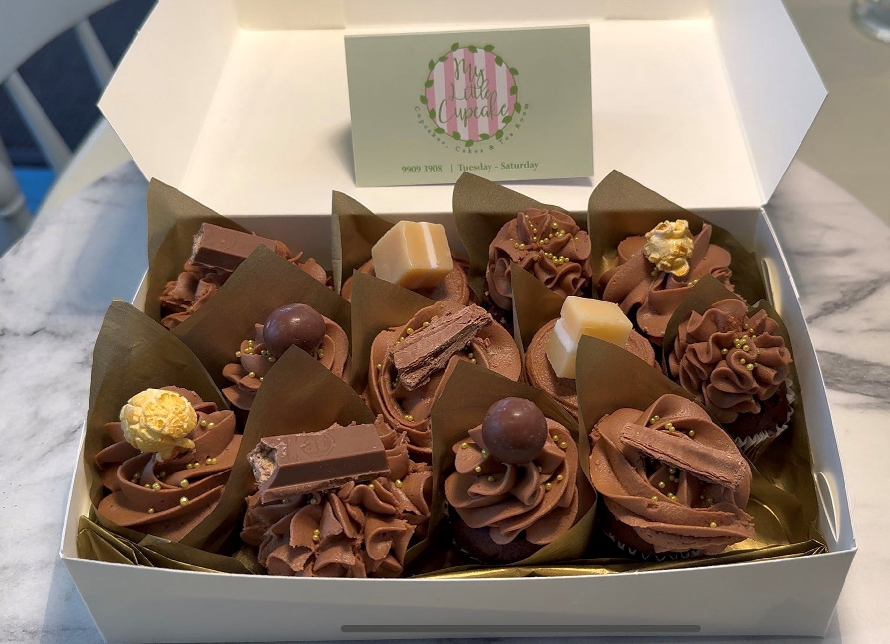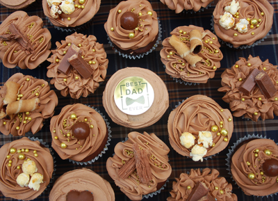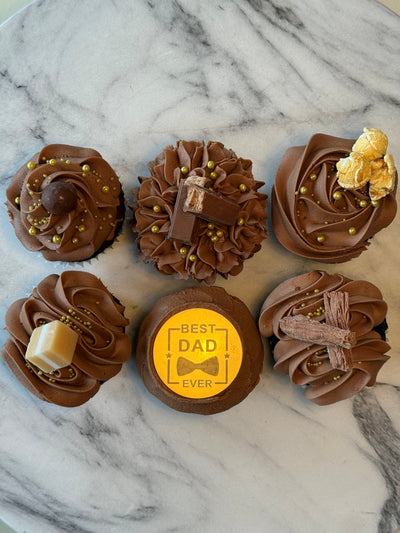 Treat someone special with these deliciously deluxe chocolate cupcakes! Topped with swirls of our luxurious chocolate icing made with real chocolate, and assorted chocolates and Caramels & Caramel Coated Popcorn.on top.