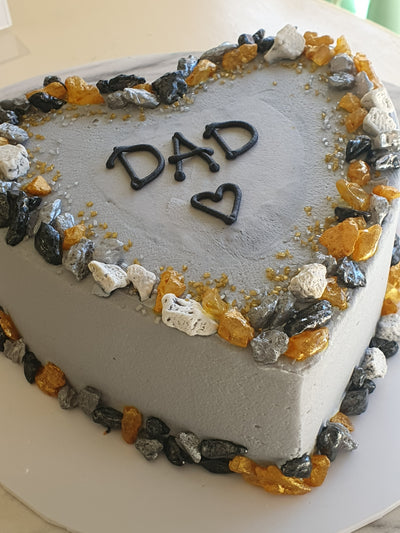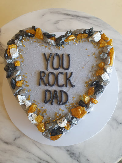 Available in Round or Heart Shaped cakes and encrusted with edible sugar crystals and chocolate rocks as well as an essential Fathers Day pun or message, spoil Dad with one of My Little Cupcakes delicious cakes!  Note that the message on the top of the cake is customisable,  just add your message in the notes section of the cart.